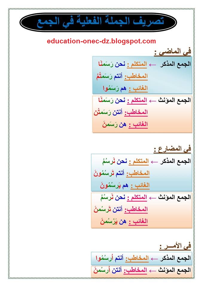 تحضير درس تصريف الجملة الفعلية مع ضمائر الجمع في مادة اللغة العربية للسنة الخامسة المكيفة مع الجيل الثاني