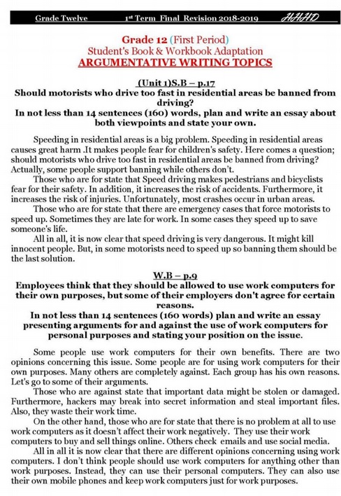 مواضيع تعبير لمبحث اللغة الانجليزية للصف الثاني عشر توجيهي المكتبة الفلسطينية الشاملة