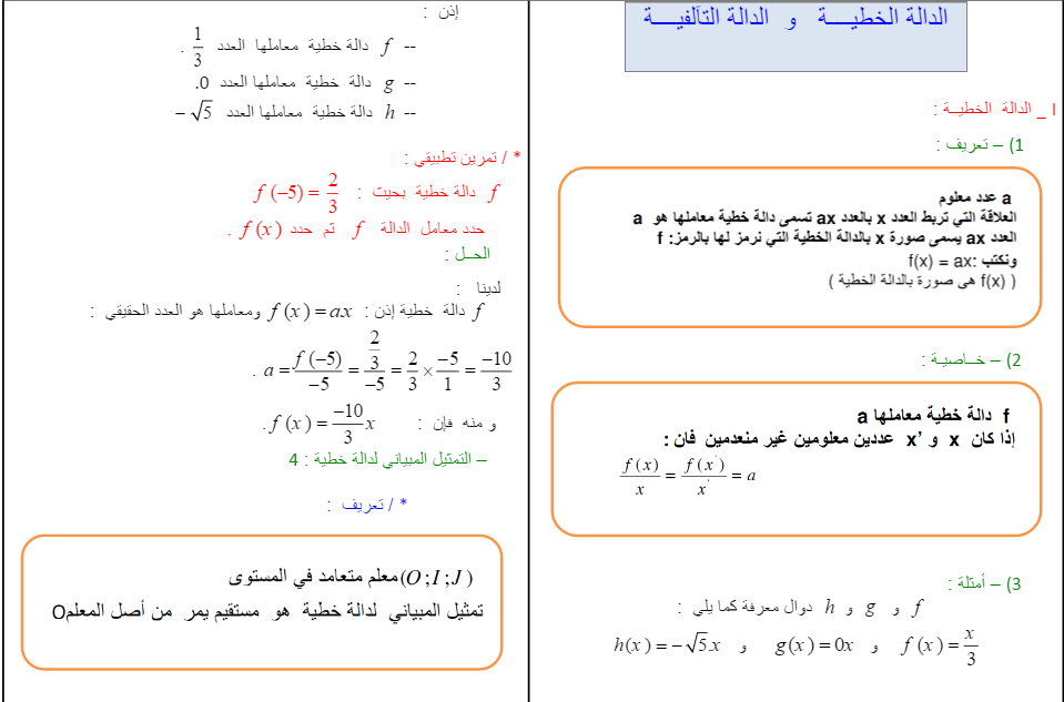 الدالة الخطية والدالة التآلفية للسنة الثالثة إعدادي