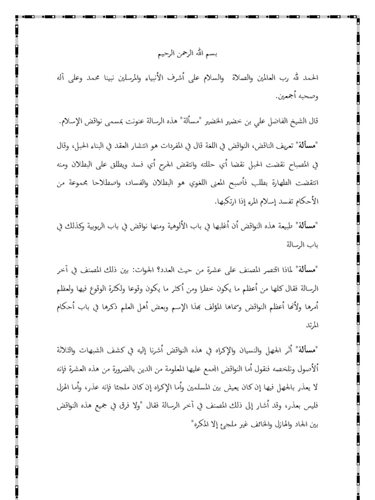 ملف نواقض الإسلام خ Pdf ويكي مصدر