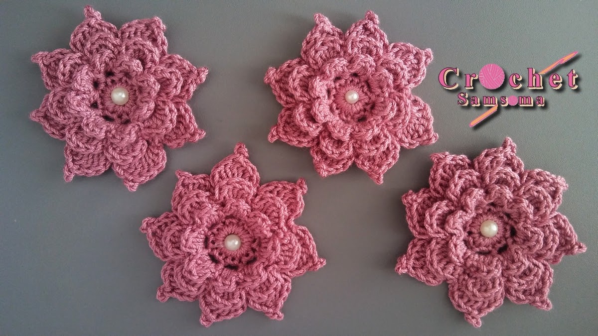 كروشيه وردة مجسمة ملفوفة Easy Crochet 3d Flower Youtube