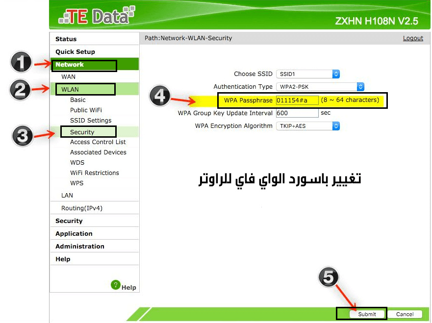 كيفية تغيير باسورد الواي فاي راوتر Te Data