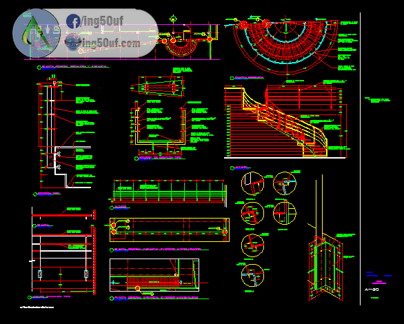مخطط تفصيلي سلم حلزوني اوتوكاد Dwg