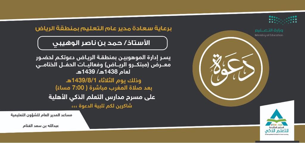 Uzivatel الحساب ملغي Na Twitteru دعوة عامة لحضور معرض مبتكرو الرياض ٢٠١٨م وفعاليات الحفل الختامي لإدارة الموهوبين في تعليم الرياض شاكرين لكم تلبية الدعوة Https T Co Gnzugjfrlu