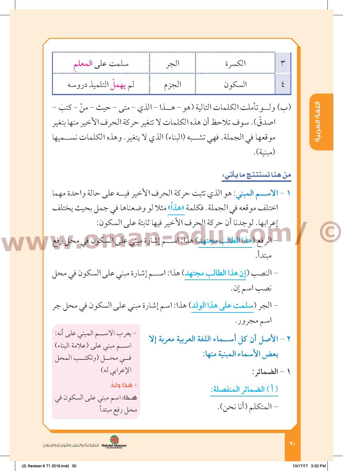 Tema Morsmal الدرس الأول حول المـــعـــرب والمبــنـي مـــن الأســمـــاء