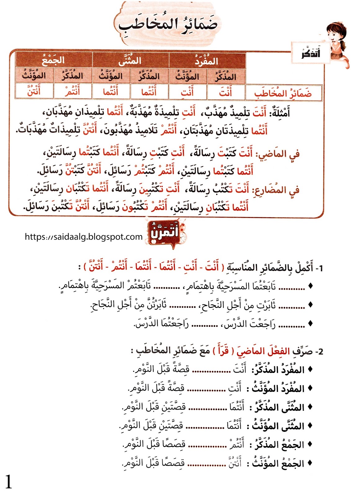 ضمائر المخاطب تدريبات تمارين أنشطة