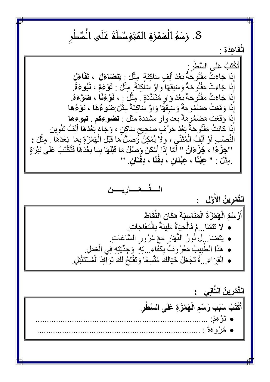 Ar Ce3 الهمزة المتوسطة تتمة التمارين التطبيقية