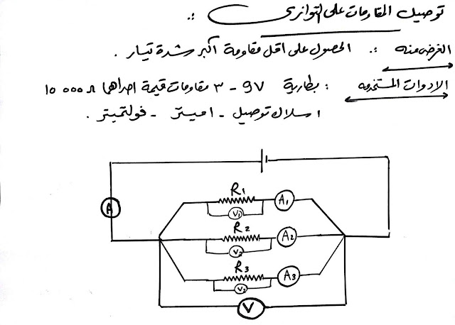 تجربة عمليه عن توصيل المقاومات على التوازى للثانوية العامة